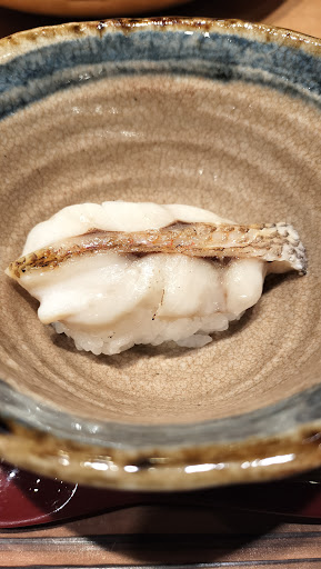 以下握り。 ◇ヤリイカ 天然塩とレモンで ◇ノドグロの蒸し寿司 炙りじゃないノドグロの寿司って初めてかも。 ええ脂が温かいシャリに全部吸収されてて最高。 ◇生カジキマグロ ◇甘エビ なんのかのと甘エビも甘いわ! ◇真アジ ◇白エビ ガスエビ・甘エビともまた違うねっとりとした甘み。 金沢エビ大国やな。 ◇中トロ ねっとり波状攻撃。 ◇卵焼き 甘エビそぼろ入
