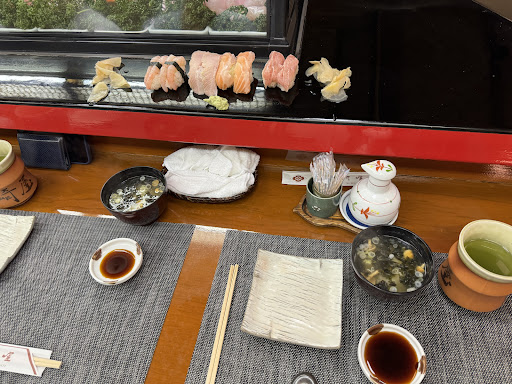 This is the place you want to go to have a sushi experience. It's very small and a very collective experience. When we were there, it was about 50/50 tourist to local, but it seemed like the locals came there for the sushi as much as the conversation with the tourists. We sat at the sushi bar, and if you have that opportunity, take it over the 3 small tables. The sushi chef, a master as told to me by a local, was very personable and serious about what he was doing. The miso was the best I have ever had, and the green tea was rich. I liked it a lot, but my wife thought it was a bit too strong. The sushi was delicate and hand made and when it was served on the 45 degree angle counter the chef went one by one through the set we ordered and said 'soy, no soy, touch wasabi, no wasabi'. When we were done, the bill was reasonable, and the transaction was simple and honest. Only cash, no cards of any kind, and like most Japanese places... no tip expected or requested. We were 7800 yen for two people, and it was worth every penny. It's a place you could walk right by if you were not looking and when it's full, they just politely wave people away so as not to rush the patrons inside. They were probably husband and wife and entirely invested in what they were doing. I would go back again in a heartbeat but only in town for two dinner opportunities and also needed to hit up a Raman place as well. I will review that place if it's...