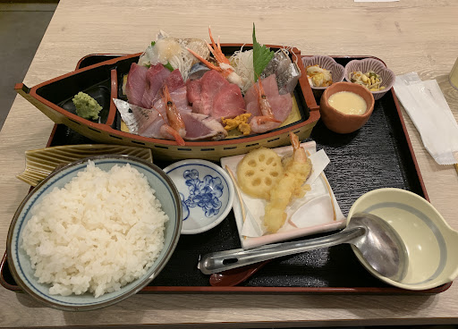 Read moreTerrific work place just outside of the train station and mall under the tracks. Great value and super quality compared to the more expensive places in the mall. You can tell this is a good place because it is full of locals and there’s a frequent line up outside. I had the premium sushi boat with the miso seafood hot pot. Just 2500 yen. The rest of our party had various seafood bowls. I highly recommend the miso seafood hot pot add-on for just 350 yen more.
