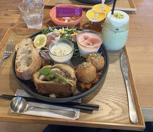 Read more祝日のオープンと同時に行きました。5分前くらいからみなさん並び始め、開店と同時に満席になりました。9割方子連れで、奥にあるキッズスペースはすぐに子供でいっぱいになります。席は3つ程のソファー席(席によって4〜8人くらい)、あとはテーブル席になっています。子供用のベルト付きチェアやバウンサーなど数も多めに準備してあります。 お食事は数量限定ランチ、キーマカレーランチがありました。子供用はカレーのみ。隣のベーカリーでパンをテイクアウトして、ワンドリンクオーダーすればパンを食べることもできます。オープン前にパンを購入して並んでいる方もいらっしゃいました。ランチ美味しかったです。ドリンクは普通のりんごジュースでも600円、他は700〜800円します。カフェ時間になるとケーキ注文可能になります。レモンパウンドケーキは少しパサつきもありいまいちでした。子連れでない方は騒がしさもあり、居心地悪いかもしれません… 駐車場は広いで...