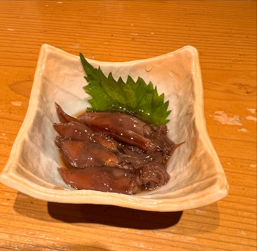 On our second visit, we started with the marinated firefly squid again and added the braised beef tendon, which was tender and sweet. We then ordered Chicken Kushikatsu, Chicken Yakitori, and the fried Noto oyster, which was outstanding. The spicy chicken was good as well, although it wasn't as spicy as we had anticipated. Finally, we tried the crab cream croquettes, which were quite good too.