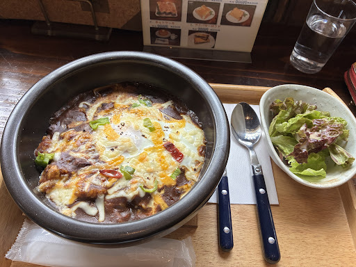 美味しい珈琲が飲みたくて行って来ました♪ お店の外観は、どんな珈琲に出逢えるか…ワクワクする感じです。 店内に入ると沢山の珈琲豆があります。 期待値が爆上がり⤴️⤴️ 焼きカレーと珈琲セット¥1200をオーダーしてお水が運ばれてきましたがお水にびっくり!!! 普通の常温の水道水。 氷1つも入ってなくて本当にただの水(蛇口からそのまま出して入れた冷たくも何ともない)然もカルキ臭?臭い。 爆上がりだったテンションはダダ下がり⤵︎⤵︎⤵︎ 外がめちゃくちゃ暑かったので食事の前に冷たいお水をがぶって飲みたかったのに、、、一気に不安が心を襲う。 焼きカレーの提供まで少し時間があったが焼きカレーは普通に美味しかったです。 お目当ての珈琲はアイスにしました。食事の後に提供され一口飲んで此処に来て良かった!と思いました。 口に含んでからの味も香りも最高でした♪鼻から抜ける珈琲の香りの良さ。 カレーの後だけに尚更、冷たさと美味しさと香りの良さが引き立ちました。 次回は、ホット珈琲を飲みに行きたいけどあのお水は、どうにかならないでしょうか?なので⭐︎-1にしました。 ...