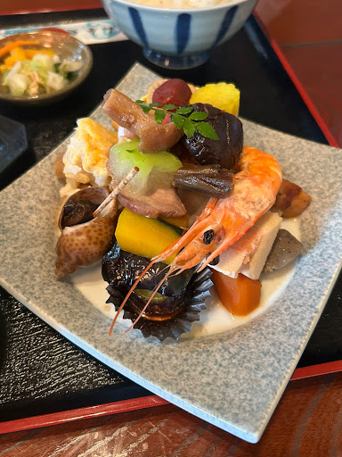 Read more可児の花木センターからほど近い 天海さんへ お友達のオススメのお店という事で 行ってきました 焚き合わせが本当にオススメだと、聞いていたけども 女将さんにも聞いてみると お店の一押しは、焚き合わせとの事でした 名古屋や、遠方からわざわざこれを食べにこられると言われ 焚き合わせ定食と、単品で天ぷらの小を注文しました 出てくるまで、どんな感じなのか 全くわからず 目の前に置かれて、すご〜い‼️💓ってなりました 全部味が違うんです、と言われ 全部別々に煮たものが大将しかできない盛り付けでこうなるそうです 手がかかってる‼️ そして、全部で20種類くらい 全部お味が違いました 本当に感激する😍✨美味しかった 天ぷらも揚げたてが運ばれてきて 季節の野菜の天ぷらと、大きくてぷりっとしたエビ🦐 どれも美味しいわ 他のお客様もみなさんそれぞれ、ご自分の好きなものを食べられてる感じ 常連さんというか、よく来られてる人がたくさん この日も続々と入店される 大将お一人かな? 提供まで少しお時間かかりましたが 全然許容範囲でした 御料理の感動がまだ残ってる 次は何を食べようかなぁ って、...