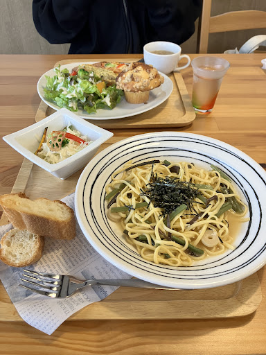 Read more平日のランチでお邪魔しました! とにかく店内の雰囲気がとてもよかったです😊 お店には数多くの可愛い雑貨が飾られています。 イメージとしてはジブリの映画に出てきそうなカフェでした! 料理はパスタランチのドリンクセット(¥1,230) 当院のスタッフはマフィンとピザトーストのランチ、ドリンクセット(¥1,230) を注文。