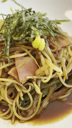 エアコンの風が直当たりしなように。そんな思いやりの感じるお店です。お店は喫茶店に近いでしょうか?ゆっくりとくつろげる雰囲気でした☺️ 値段も高くありません💴 パスタは1000円ほど、ハンバーグ(ライス、味噌汁付き)は1500円ほどで、飲み物やデザートセットにしますか?🍰☕️と聞かれました いなかスパゲッティ🍝とおろしハンバーグを注文! いなかスパゲティは多分食べたことがないのに(?)なぜか懐かしい味が!!なぜ?!美味しかったです☺️ おろしハンバーグはメニューよりでかい?! でっかーいふわふわハンバーグがデーン!!! 鉄板にパスタやコーン、玉ねぎが乗ってることはあるけどもやしが乗ってるのはびっくり‼️おもしろかった! また行きたい!次はコーヒーと...