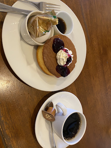 Read more昔からある茶店。 懐かしく立ち寄りました。 いつからスフレパンケーキのモーニングがあるのか… 朝からパンケーキ🥞 +150 ゆで卵 おやつ ブレンド