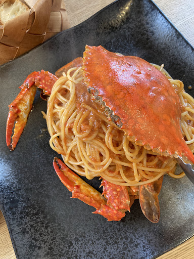 Read more蟹は食べられます。柔らかい。ランチに伺いました。取り分けランチセットでパスタは渡り蟹のトマトクリームをチョイス。蟹の殻やハサミは飾りかと思っていましたが、殻入れの皿、身をほじくるスティックなどを渡されました。蟹は身が入っていて食べられます(美味しい)が、パスタソースがかかっているので、下町のイタリア人の様に指がベタベタになりながら指で殻を割って食べるのがオススメです。紙ナプキンや紙おしぼりは席にあります。ボールが欲しくなりますが。 平日12時前にお邪魔しましたが、私達の後に次々と入店して、12時過ぎにはカウンター席までいっぱいになりました。また、どうしても近い席の話し声は聞こえてきますので、こればっかりは運次第です。