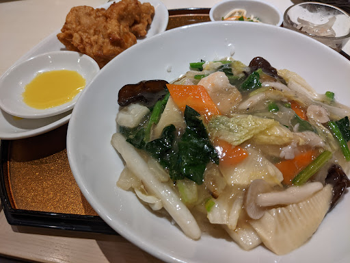 ひとりで入店しましたが、広い席で恐縮でした。 他の浜木綿さんも含めると数え切れないほど利用してます。 ランチは大抵の場合、この唐揚げランチセットを注文します。コスパが良いですから。 今回はミニラーメンも合わせて注文。 注文は、たぶん感染症対策でタッチパネルが採用されていました。ま、昨今そんなに珍しいものでは無くなったので、みなさん難なく操作できると思います。 ミニラーメンはプラスワンにはちょうどよいサイズ。本格的なスープが楽しめます。 中華飯はたっぷり野菜で良い。塩加減はちょうどよいですが、これは酢をかけて食べたかったです。卓上から撤去されていたので残念。 そういえば浜木綿さんは素敵な経営理念をお持ちで、「豊かでハッピーな食事時間を提供します」と締めくくられています。 しかし、本日相対したスタッフさん3人からは笑顔がゼロでした。気持ちの良い笑顔って、マス...