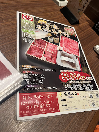 連休中はランチタイムも営業とのことで予約して伺いました。 店内は綺麗で雰囲気もとても良いです。靴を脱ぎ入店するタイプです。 2人で入店しましたが割と広い個室に通されました。 店のお勧めのコースにしようと思いましたが、今回は単品にて注文する事にしました。 オーダーしたのは… ①安福サラダ(シャキシャキ野菜に日向夏のドレッシングが最高で🆗) ②タン塩(旨味があって柔らかく🆗) ③上カルビ(特に普通な感じ、上か?🔼) ④イチボ(ホントにイチボか?固いよ❎️) ⑤カイノミ厚切り(スジスジで固いよ❎️) ⑥上ハラミ(柔らかく臭味も無く🆗) ⑦ライス(柔らか目で🔼) と、食べ進めました。 イチボの食感から⁉️ってなって追加オーダーをストップしてしまいました。 なんでイチボがこんなに固いの? スーパーで買って家で焼いた方が余っ程美味いよね?って会話になりました?