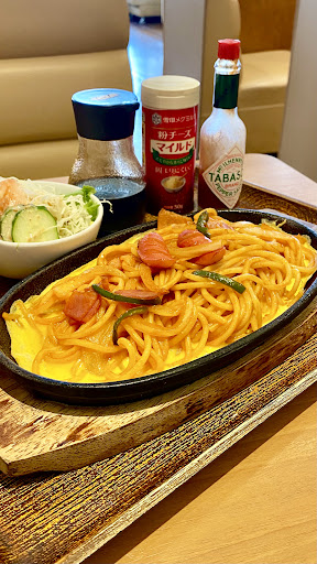 Read moreメニューは軽食、定食をメインにスパゲッティ、ピラフ、丼物など、豊富なメニューの中から選ぶ事が出来ますが、私は喫茶店に入ると何故かイタスパが食べたくなるので迷わず鉄板イタスパを注文😎