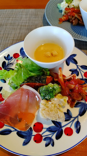 Read more案内をしてくれた女性がとても感じの良い方だっただけに、酷く残念でした。ランチをお勧めしてもらったので、2人でランチを注文。飲み物も食事と一緒にお願いしました。 先に席についていた隣の2人組の方の食事もまだ運ばれて来ていない感じでした。前菜のプレートが届き、食べていた頃、空いていた席に3名入ってきました。食べ終わってもまだお隣もパスタは運ばれておらず。 しばらくすると、先客の方のパスタが届きました。私と同じものでした。2皿運んできて…先客の方に1つ。そして、後から来た方に1つ。何故??あ、相方と同時にサーブしようとしてるのかな? しかし、更に先客の方に届いた時、相方と同じパスタを後から来た方に。 意味がわかりません。 次も後から来た方へ。飲み物も全て、後から来た方のテーブルは揃いました。 私達のパスタはまだ来ません。 相方のパスタが届きました。 運んできてくれた方は、何も言わず、○○です。とだけ。 相方のパスタが冷めた頃、私のパスタが届きました。やっぱり、何も言わず、○○です。とだけ。 相方は食べきりましたが、飲み物は運ばれて来ず。 相方も味がほとんどしん…と言って黙って食べてました。 私のはアマトリチャーナとありましたが、やはり味は薄く、ベーコンも焼けてなく、玉ねぎはクタクタなのが少し。久しぶりに残しました。 飲み物はキャンセルし、退店しました。 こんな事は初めてです。 満席でもなく。50分ほど待たされましたが、お待たせしましたの一言欲しかったです。