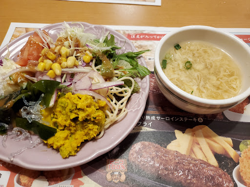 Read more誕生日など、節目に家族と行きます。 蟹江店は店も広くて居心地が良いです。 子供たちはサラダバーがお気に入りで、ハンバーグも美味しくて家族で行くのに良いです。 ただ、2歳の子供の取皿、スプーンフォークなどはありませんでした。子供用は出さないのでしょうか? 大きいフォークしかないので、店員さんにもらおうとしても呼び出しベルがなく、サラダバーにいた店長らしきメガネの男性に声をかけたら、忙しかったらしく、要件も聞かずに「待ってください」と言われ、どこかに行ってしまいました。あれは無いな、と思いました。なので☆マイナス2です。 仕方なく大きいフォークで食べさせていましたが、バイトらしき若い男性に伝えたらサラダバーの補充中でしたが、持ってきてもらえました。あるなら最初に出すか、サラダバーの...