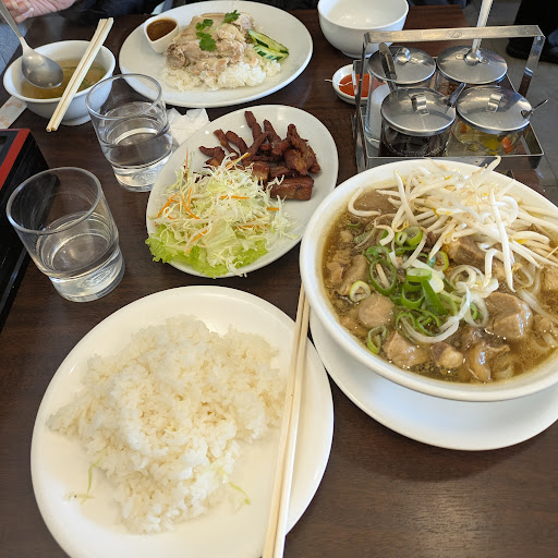 2023/12/2情報の追加 日曜日お昼、グランドメニューから以下の3つを注文しました。 クィッティアオムー(豚肉入り米粉麺)写真あり さっぱり塩味スープ、豚肉ゴロゴロ、ナッツが入っていて、ビーフンみたいな麺が入っています。とても美味しい。 コームヤーン(豚肉焼き)写真あり 豚の部位は脂身多めのところで、つけだれついてきますけど、無くても全然美味しい。醤油でカリッと焼いてある感じです。 カオマンガイ(鶏がらスープで炊き上げたチキンライス)...
