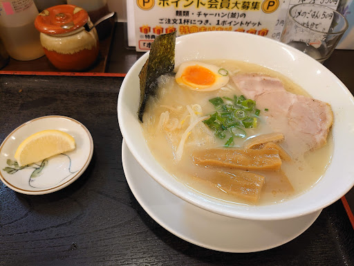 こちらの一押しっぽいので鶏白湯らーめんを頂きました。 麺はデフォルトの細麺にしました。しっかりとした食感のストレート麺でスープと良い感じで絡みます。 スープは鶏白湯がしっかり主張しますが、くどくならずあっさりしております。レモンが付いてきましたが最初から入れられていると思われる分で丁度良かったです。基本的にラーメンのスープにレモンなどの柑橘系や酢などの「酸っぱみ」を入れることに否定的なのですが、少し見方が変わったかも。 具はチャーシュー、味玉(半個)、太目のメンマ、のり、もやし、青ネギ。良い組み合わせです。 総合して良かったです。豚骨を薦めるコメントも多いですしご飯ものも気になるので、再訪させて...