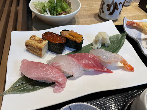 Read more他県から来てくれた方を魚がしに連れて行ってあげたいとの事で1番近いこちらに来店。私は今、生魚が食べれないので食べれるとしたら天丼かうな丼くらいですがお寿司も楽しみたいと思い穴子寿司を頼んでみました。また、久しぶりに天ぷらも良いかな。と思い天丼にしました。 穴子寿司は美味しいとは思えませんでした。 あまり他で食べないのでこんな物なのかもしれません;