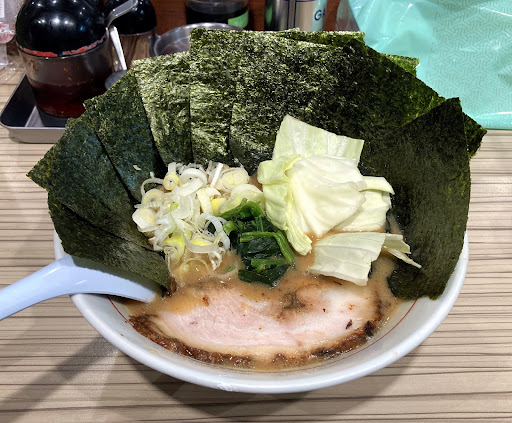 黒緑色で光沢のある海苔は大きさは普通。 見た目はいいけど、スープに浸すと縮みます。 風味はなかなか良かったです。