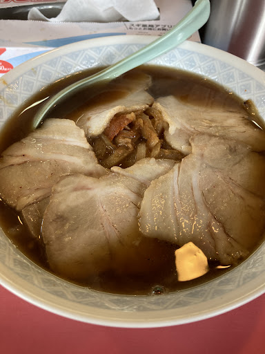 Read more2022/01/09 初訪問 YouTubeの小川泰平の「ラーメン刑事」で見つけたお店 最近の口コミで、いろいろと書かれている内容に内心.....ですが、 自分の舌で確認に行ってきました。13時過ぎにお店に到着。 店内に入ったらまず中が白く煙っていて、一瞬ひるんでしまった。 店内には6名ほどお客さんがいました。座席は、カウンター席のみ。 店内はいい意味で年季の入った雰囲気があり、 悪い意味で、いろいろとガタがきておりって感じでした。 天一ラーメン 950円 大盛200円 ライス300円を注文 豚バラ、玉ねぎ、すりおろしニンニクを炒め、 わざと少し焦がしていると思われる。 その為店内が白く煙っていると思われるが、 換気扇や空調はどうなっているのだか.....。 スープを一口、ガツンとニンニクが来るパンチのあるスープで、 後から少し焦がしたこうばしさが追いかけてくる好みのタイプ。 麺は細めの縮れ麺ですするとスープを引っ張ってくれるが、 パンチのあるスープに麺が負けている気がする、 卓上に揚げ玉が置いてあったけど、湿気ていた 具とスープをライスにのせてミニ丼スタイルに これが一番おいしかった。 感想としては、一度自分で経験してそれでおしまい。 すぐ近くにあるブ...