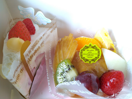 Read moreクレープもフルーツのケーキも美味しいケーキ屋さん。流石にケーキ屋さんだけにクレープも生クリームが美味しい。おまけにボリューム感満点で満足です。ケーキもフルーツが乗っているのに目が引き、ぷりんアラモードをテイクアウトの一つに。色とりどりのフルーツは新鮮で、自然な甘さに美味しく頂きました。包装も丁寧で、クレープを横倒しにしても大丈夫なように包装してくれます。でも、帰り道1時間かかるので待ちきれず車内でかぶりつき。アパートに着いたときはサンタさんのように口の周りが汚れてしまいました。ウェットティッシュを付けてくれるとありがたいかな。食べるのが...