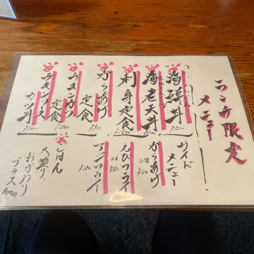 「益やん」に知人に連れて行ってもらい昼を食べる。益やんは居酒屋、昼はデカ盛りランチで有名らしい。店内は左側にカウンター4席、右側の座敷は広く4テーブルある。 益やんランチメニューは、 海鮮丼1,200円 えび天丼1,000円 刺身定食1,500円 からあげ定食900円 チキンカツ定食1,100円 チキンソースかつ丼1,000円 何を注文しようか考えていたら、とらにのテーブルに、山盛りの「チキンソースかつ丼」が運ばれてきて、引いてしまった。しかしデカ盛り有名店に来たので、私は「えび天丼」、知人は「からあげ定食」を注文。 しばらくすると注文した料理が運ばれてきた。「えび天丼」には皿が一枚付いている。山盛りの天ぷらを別の皿に移さないと食べれないからだろう。天ぷら自体はカラッと上がっておらず美味しいとはいえない。しかし、エビが5匹に野菜天がたっぷり乗っていてコストパフォーマンスは高い。知人のからあげ定食もからあげがたっぷりあり食べるのも辛そうだった。 寿司居酒屋なので、やはり海鮮丼がいいのかも知れない。次回は「海鮮丼」か「チキンソースかつ丼」チ...