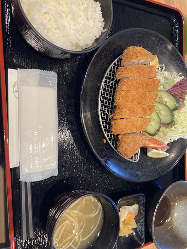 Read moreロースカツ定食とシャインマスカットのパフェを注文。 カツは揚げたてサクサクで肉厚ジューシー。先に付け合わせの野菜から食べてそれからカツを頬ばれば、余熱で芯まで熱が通りよりジューシーになります。ちゃんと計算して揚げてるんでしょうね、匠の技です。