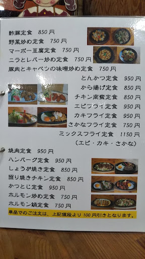 Read more評価良いので妻同伴で訪問、平日木曜日12:00到着、駐車場はお店前に10台程度、ほぼ満車、停められ無かったら向かいの葬儀屋さん駐車場へ、コロナ対策はアルコール、トイレは男女兼用ウォシュレットです。店内は漫画本が置いてありテレビ映像が流されてますが、満席状態だと音声は聞き取れません。お冷と紙おしぼりが出ました。4人椅子席9つ、カウンター椅子席2つです。ほぼ満席、何とか座れ、中華屋さんとして訪問したので中華丼600円を、妻はニラとレバー炒め定食850円をオーダーしました。中華丼は汁だくで海老、貝、イカ、各種野菜など入って美味しい、この値段なら町中華的に合格の味です。ニラレバは少し薄味だったそうです。機会があれば...