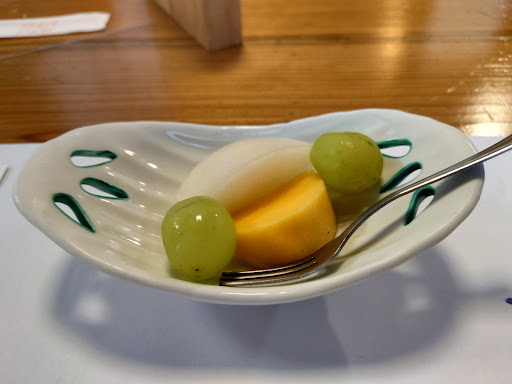Read moreお座敷です。畳でも椅子とテーブル席に出来る事をお願いします。 料理に関しては、季節に関係なく器は同じ物です。蒸籠に天ぷらは驚きました。 蒸籠はやはり、蒸し物でしょう。 せっかくの個々の味が勿体ないジャガイモのグラタン。口取りも、個々の料理を混ぜすぎと思います。 デザートの果物と羊羹の同じ...