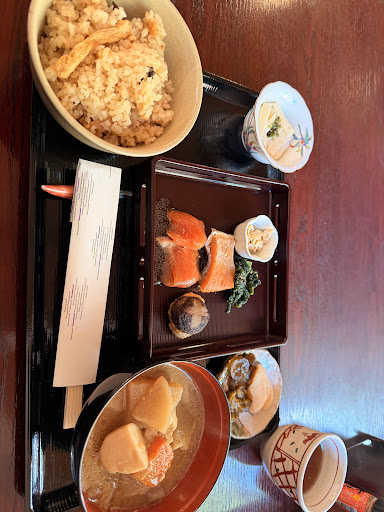 期待していたより遥かに良い食事が来ました。 まず、手前の炊き込みご飯とけんちん汁の入ったお椀、かなり大きかったです、見た目よりボリュームが有ります。 特にけんちん汁は具が沢山入っていて満足感が高いです、そしてとても美味しかった。