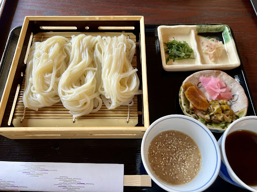 Read moreめんつゆとごまだれ、2種類でいただくことができます。 1,500円と少々割高ですが景観が素晴...