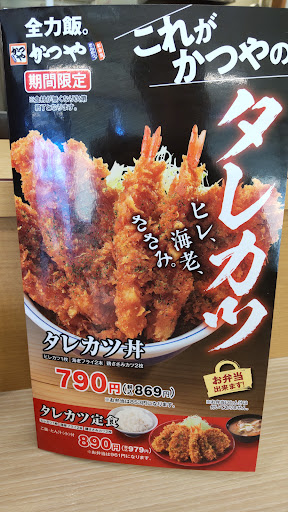 タレカツ定食が食べてみたくて久しぶりにかつやに行きました。 少し早めの時間に行ったのですが、テーブル席は半分ほど埋まっておりましたがカウンター席は空いていました。 カウンター席に着くとすぐにお茶が運ばれ、注文は決まっていたのですぐに注文しました。 待っている間、お弁当の注文がひっきりなしに入っており、厨房は大忙しでした。 出来上がった定食が運ばれて来て、早速いただきましたが、ヒレは温かくて美味しかったのですが、ササミは冷めておりイマイチ、エビは衣はきれいに揚がっていましたが少し冷めており、中は少し生の感じがしました。 タレに付けるから多少は冷めるのでしょうが、特にササミはあげ揚がってからしばらくバットに置かれており、なるべくして冷めていました。 熱々を期待していたのでとても残念でした。