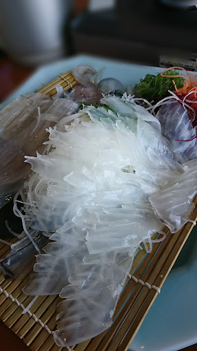 Came here on a Friday at 12:30 and was to get a lovely seat by the ocean. Place wasn't so full on the day we came. Ordered the squid sashimi set which had lots of little side dishes and the squid sashimi for main for 2200 yen. Once you were done with the sashimi the fried (tempura) the head and tentacles which was great. The squid dumplings were a favorite at our table as well for 550 yen for 3. Overall was a great experience and worth trying if...
