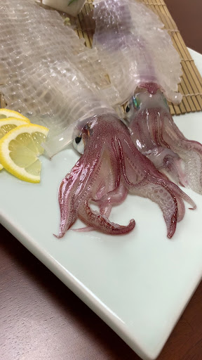イカは透き通っていて甘みや歯応えもよく、刺身を食べ終わってもイカがずっと生きて動いていました!