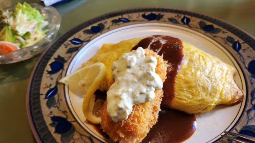 30分近く待って、オムライス登場(サラダ付き)スタンダードな感じだが、ライスはチキンライスやケチャップライス系ではなく、炒めた挽き肉とライスというシンプルな感じ。卵部分も普通。 デミグラスソースが、やや少なかったが、シンプルさで勝負してるのかな。 カニクリームコロッケは、普通に美味しかった。というか大好物で、外さない一品だよね。