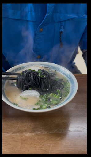The black ramen noodles, perfect texture, and thicker than most if you just came from Fukuoka which are...