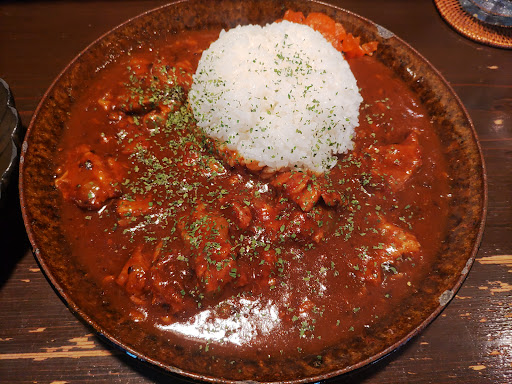 Luna curry is very tasty, small version is not very filling - get the large one for extra 200 yen. Warning - it is made with chicken stock so not suitable for vegetarians or vegans.