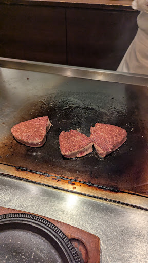 The beef we ordered of course was A-5 wagyu with a 9 out of 12 score. Very rich but not too fatty. The meat was sliced and cook to perfection. The chef knows folks are going to film him and he puts on a great little show. I won't spoil it for you. Everything that was cooked was eaten. Highly recommend going here. Very clean and even the bathrooms you will feel your in a high class restaurant, trust me go to the...