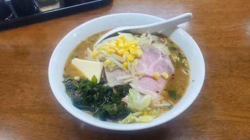 唐津市八幡町、佐賀県道23号線沿いにあるラーメン屋です。意外と大きめの店舗で、店内はカウンター席·テーブル席·小上がり席が完備されており、席数も充実しています。駐車場は、キチンと確保されている訳ではありませんが、店前のスペースに数台は停められるようです。さてラーメンですが、「味噌ラーメン」「醤油ラーメン」「塩ラーメン」の3種類が基本となっており、今回は筆頭メニューのノーマル「味噌ラーメン」を頂きました。こってり濃厚な赤味噌メインのスープで、程良い酸味が特徴的です。麺は中太ストレート麺が使用されており、プリプリ·モチモチとした食感が楽しめます。具は大判チャーシュー、もやし、キャベツ、タマネギ、コーン、ワカメ、ネギといった構成の一杯です。チャンポン並みの野菜のボリュームが堪りませんね。大盛り対応あり、替え玉制ありとなっています。ラーメンのバリエーションは基本の3種類のトッピング違いが数種類ずつ展開されている他にも「担担麺」や「チャンポン」「焼きそば」「焼きうどん」等といった麺類も用意されています。サイドメニューもそれなり豊富で、「焼き餃子」「スープ餃子」「チャーハン」「たかなチャーハン」「豚丼」といった単品メニューの他、定食類も扱われています。人気メニューは「チャンポン」「焼き餃子」のようで、「焼き餃子」はボリュームもあり、プリプリとした食感が印象的でした。 1975年開業のこちらのお店、市街地から少し離れたローカルな立地や昭和テイスト漂う店内と、穴場食堂の雰囲気が楽しめますね。唐津では珍しい非豚骨ラーメン...
