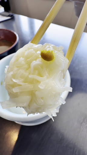I did give service 5 stars because all of the people who I talked to did their very best to let me know certain things even if they don’t speak much English(what not to eat on the squid). But I was a little confused when another worker came when I was still working on my last few pieces of squid (taking my time to really enjoy the quality of it) and rushed me to take them off the serving dish, because of this I ended up forgetting to grab a little bit more wasabi for those pieces (wasabi came on the same dish as the squid along with the lemon slice, not on the personal set tray). So I was a little sad to be rushed since the wasabi with the squid is amazing, she did try to say something to me after I grabbed my last pieces but I don’t really speak any Japanese except for the most basic of basic terms so I just had to smile and nod. But other than that little bump everyone there was really nice and did their best to communicate with me.