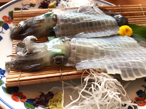 Read moreWe stayed at this ryokan in early November 2021, when the fourth wave of COVID 19 was rapidly subsiding. It was pouring when we arrived at the ryokan in Karatsu, close to the castle and facing the beach. I had thought that it was a restaurant offering lodging, but I understand that it was the other way around. In any event, a lady came out, showed us the car park, and brought us umbrellas. We went to the small reception, and it didn’t take us long to complete the registration. The receptionist, who I thought could be the owner as well, asked us if we had brought vaccination certificates, which we had forgotten to bring with us. “We ask because we are offering free drinks to guests. But let me see what we can do.”she said. With that we were shown to our room upstairs on the second floor. We were told that the public bath was on the ground floor, but it appeared that the bath was busy at the moment with some families. We decided that it would be better to wait till closer to dinner time, which was the right decision as I had the entire bath for myself and was able to relax from the long day. I was looking forward to dinner, as I had ordered a course including squid sashimi from Yobuko close to Karatsu and famous for its fresh squid. Dinner was served in our room, which I guess has now become standard practice with the pandemic. Luckily the ryokan gave me the free sake. The squid came first after the appetizer. The squid was still transparent, testifying how fresh it was. It was really delightful. This was followed by a sweet simmered head of seabream, some Saga Beef cutlets and fried blowfish. I must say it was one of the best (mainly)seafood dishes I’ve ever had. I really recommend travelers to try seafood dishes on the Saga coast. It was a most enjoyable dinner. The ryokan however did not accept credit cards, and I had...