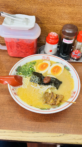 Read more2025年加筆 24年の改装からラーメンの味がだいぶ変わりました。醤油辛さやコクが控えめになってかなり甘めになりました。尖った部分がなくなって全体的に丸くなった印象です。 現在の味も悪くはないのですが、以前の味がとても好きだったのでちょっと残念。 特に角煮は以前は真っ黒になるまで煮詰められてたのがだいぶ甘口かつ薄味になりました。 あと昔はチャーハンは油ギトギトだったのが今は改善されて油量は普通です。しかし鍋のコゲが付着して全体的に黒く煤けた感じに見えて実際コゲネギとか普通に入ってます。まぁ意外と悪くはないけどやっぱコゲはちょい気になるかな。 ちょっと変わった風味のとんこつラーメン チャーシューはなく角煮が串で出てきます 独特の味のスープに極細麺。重くないので起き抜けでも食べれます。支払いは食券制で万円札まで使えます。 味は好き嫌いは別れますが、あっさりしつつもコクがある一度好きになると通いたくなる味。 最初は普通のとんこつと比べるより独自ジャンルと思って食べたほうがいいかも。 カウンターに辛味噌が置いてありますので、替え玉後にそれで味チェンするのがおすすめの食べ方。辛味噌結構効きますんでスプーン1杯で普通は十分。 マンボウ中は20時までの営業で...