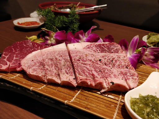 Read moreDie große Attraktion dieses Lokals sind die 90 Minuten All-you-can-eat mit eigenem Tischgrill. Zu Beginn wird fein marmoriertes Wagyu-Steak aufgeschnitten, was natürlich für sich schon ein besonders Erlebnis ist. Anschließend wird je nach eigenen Vorlieben verschiedenes Fleisch geliefert, dass jeder für sich selbst braten kann. Die Qualität ist dabei stellenweise durchwachsen, es werden jedoch immer wieder außergewöhnliche Fleischsorten aufgetischt. Wer mit der schlichten Einstellung in dieses Restaurant geht, möglichst viel Fleisch in 90 Minuten bei angenehm aufregender Atmosphäre zu grillen und dabei auf die gelegentlich weniger zarten Fleischsorten hinweg sehen kann, wird hier...