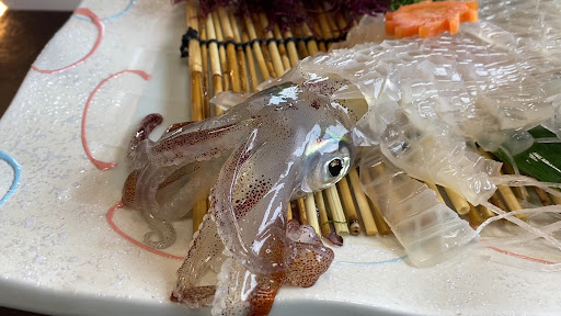 Freshest squid you will ever get here! This family farm their own squids, and they have live lobsters and fish as well. Usually you order the course here. First it serves as sashimi, then the body and tentacles are cooked as tempura. And if you choose to upgrade your course you will get the squid shumai and prawn misos soup. Everything is full of favorite, and that's the best miso soup I have ever had. Beware for the faint of heart, the squid is still moving a bit when...