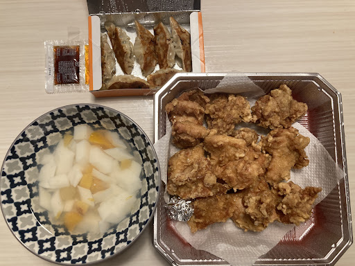 Read more唐揚げと餃子を注文! 唐揚げ、家族みんな大好きです❤️ お安い!というお値段ではありませんが 衣ばかりのではなく、しっかりお肉がある唐揚げです。 お肉もジューシーで臭みもなく美味しい😋 国産?なのかな、それとも腕が良いのか、それとも両方なのか✨ とってもオススメです。