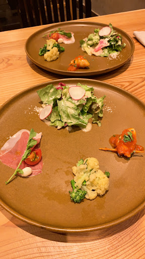 Read more今回NAPPAコースを注文しました。 ブルスケッタは美味しいなと思いました。印象としてはパンから始まり、じゃがいも、じゃがいも、パン、パスタという感じでした。 農家のパスタと言う名前からいろんな野菜が使われ野菜を売りにしてるのかな?と勝手に思っていましたが名前だけだったようです。 フライドポテトがコースに入っているのも攻めてるなと思いましたがポテトの後にコロッケは攻め過ぎてないかな?と感じました。 またサラダが付いていないのは残念でした。 パスタは4人以上だと2種類選べますが2人だと1種類なので個々に選べるようにして欲しいなぁと思いました。 接客に関しては水の提供がなくソフトドリンクを勧められ仕方なく注文したのですが、どうやら水はセルフであったそうです セルフであるなら説明して欲しかったです。 オレンジジュース等のソフトドリンクは500円近くし私的には高いかなと感じました。 駐車場は隣のパチンコ屋さんに停めていいようですが、トイレにパチンコ屋の2階に停めてくださいと注意書きがありました パチンコ屋さんの外側の駐車場に停めるとトラブルになるそうです。 接客対応は決して悪くはないですが水や駐車場に関してはとても不親切だなと思いました。 1つだけ不思議に思えた事があるのですが、パンの提供を袋に入れてくるのは食べられなければ持ち帰れますよと意味なのかなと思いましたがコロッケをテーブルでお客さんが開いた紙にトングで入れるパフォーマンスは何の意味があるのかわかりませんでした。 お店の雰囲気はおしゃれ風で調整ミスだったのかもしれませんがBGMがとてもうるさい印象でした。 個人的な感想ですがコスパ面や味に関して...