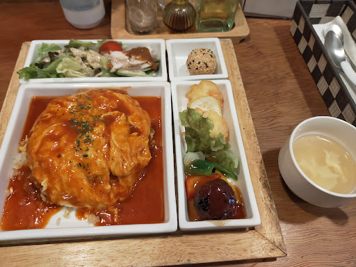 Read more雨の祝日の水曜11時半に到着。 ひとり飯。カウンターのお好きなお席にと誘導あり。 ランチメニューを見て散々悩んだあげく10食限定のオムライス、(税込み1100円)3種類のソースからトマトチョイス、ドリンクかデザートも選べて杏仁豆腐チョイス。 めちゃくちゃボリュームあり。 付け合せのサラダは半分棒々鶏。 ごま団子に熱々エビ天2個、肉団子も酢豚風に付け合わせの野菜あり。 オムライスのご飯は焼き豚がいっぱい入ったチャーハン。お腹いっぱいになりました。味は少し濃い目。 でも美味しい。 カップに入った玉子スープ。 デザートはハーフサイズの杏仁だけど食後なのでハーフでちょうどよかった。 ミルク感多め杏仁風味少なめ。 日替わりも美味しそうだったし日替わりごはんは多分おかわり可。 (常連さんらしき男性がおかわりしていた) ラーメンセットも量やセットのご飯も量も選べて(金額は変わりますが)物価が上がっているからお店も大変だろうなと思いながらありがたく頂きました。 奥様?が接客されていますがさわやかな接客で好感がもてました。 ...