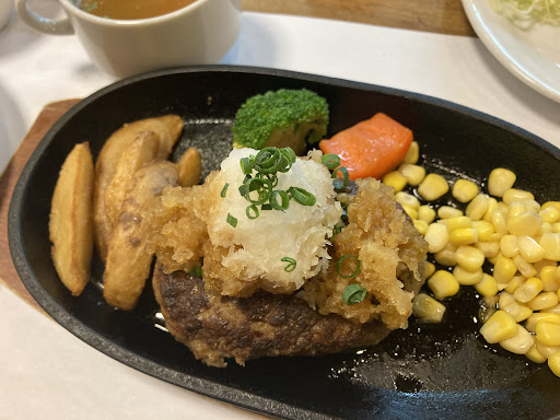 刈谷市に初めて訪ねたので、ソウルフードは何か無いが調べたら萬焼(マンシュウ)というシュウマイとギョーザを合わせた食べ物があるとの事で、刈谷駅から歩いていった。店名はMARURAI(マルライ)で、丸来と漢字表記もされていた。刈谷豊田総合病院の北側に位置しており、それを目印にしてもいい。これだけ聞くと中華料理店と思うが、実際は洋食のお店でティータイムにはケーキセットやパフェも楽しめる。訪ねた際は17時からディナーで再開するとの案内があった。周りには図書館があったのでそこで時間調整して、突撃した。店の中は馴染みやすいレストランの佇まいで、お薦めは渡蟹のスパゲッティか、ハンバーグ。宴会のメニューもスペースもあるみたい。当初の目的である萬焼、そして渡蟹のスパゲッティと思ったが、昨日からお米を食していなかったので、まかないのスペアリブ丼(サラダ・スープ付き)をオーダー。当然、生ビール中も頼んで、チビチビやっているとお待ちかねの萬焼が運ばれて来た。一個160円というリーズナブルな価格設定で2個頼んだが、ビールのツマミには最適。ギョーザ・シュウマイというより、ブタ・トリ・野菜のミジンをよく捏ねたタネを揚げ気味に焼いたおやきって感じ?エビが入っているような情報もあったが、海鮮の風味は分からなかった。肉汁が溢れるいう食感ではない。見た目は中華風だし、タレもギョーザのタレに近いがラー油はないような?適当か分からないが無国籍風と言えばいいのか。いや、ハイカラな親戚の家で供された家庭料理の懐かしさを感じる。まかないのスペアリブ丼はホロホロに崩れるスペアリブにふんだんに盛られた野菜とタレがとても美味しい。スープには野菜がたっぷりで深い味わいだ。食べるのに集中しすぎて、ビールを呑むのを忘れてしまった。萬焼はどちらかというとサイドメニュー的で、唐揚げも推されている。予想以上にスウィーツも充実しており、ランチは女性ターゲットのメニューが目立つ。思わぬ形の刈谷のソウル...
