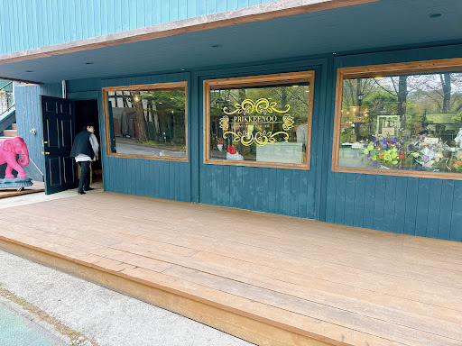 ピンクの象が、お店のシンボルとして迎えてくれる。