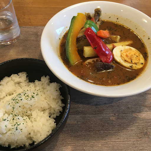 辛さもちょうどよく、色々な種類の野菜がたくさん入っていて、骨付きの鶏肉は身がほろほろで軟骨まで食べられるほど柔らかくとても美味しかったです。 野菜は素揚げではなく温野菜なのでヘルシー。