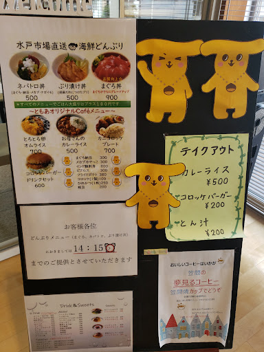 笠間焼のカップや地元食材等の利用も多く、旅行者の方やちょっと友部駅に立ち寄った方にもオススメですが、何と言っても地域住民や学生さんたち(学生さんへの限定お得価格品あり。施設内や勉強スペースでの食事OKだと思います。テイクアウト対象品あります。)に無くてはならない大事なお店になっているので、おしゃべりを楽しみたい団体さんや営業の方等にはご遠慮いただけるとありがたいです。 時々施設のイベント等で営業時間が変更になる時がありますが通常は営業しています。 ランチ時間内でも食材が切れると終了するメニューがあります。(お食事の方はお早めに。予約可のはずです。)