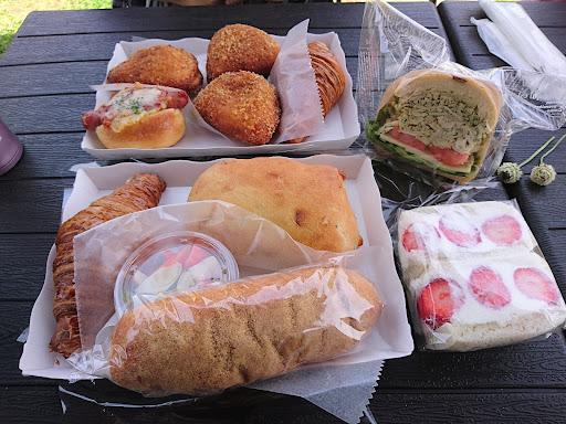 Read more7歳の娘をもつ家族と義兄とで利用しました。 この日はゴールデンウィークの中日、笠間の陶炎祭りの帰り道、美味しそうな石窯パン屋があるとの情報を聞き、このお店一択として車で向かいました。 レンガで造られたプロヴァンス風なお店、オープンテラスや手作り感満載な雰囲気で既に気持ちがあがってしまいました。 13時前ということもありお客さんは並んでいました。