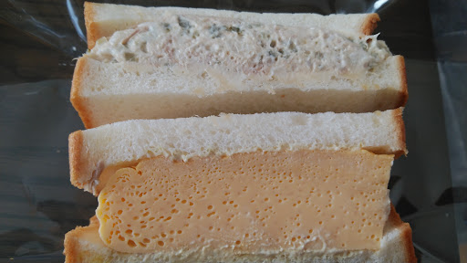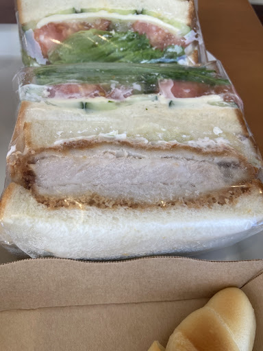 いざ入店。店内は天井が高く、予め導線が区画されていていました。 更に進んでショーケース前、焼きたてのとても美味しそうなパン達が並んでいました。 中でも目に入ったのは、イチゴのサンドイッチ。とても分厚くまるごとイチゴが6つも入ってました(驚) 小生は迷わずそれ(イチゴサンドイッチ)とカレーパンを注文。 現在、お会計はカード払いは受け付けていなかったのでニコニコ現金払いでした。